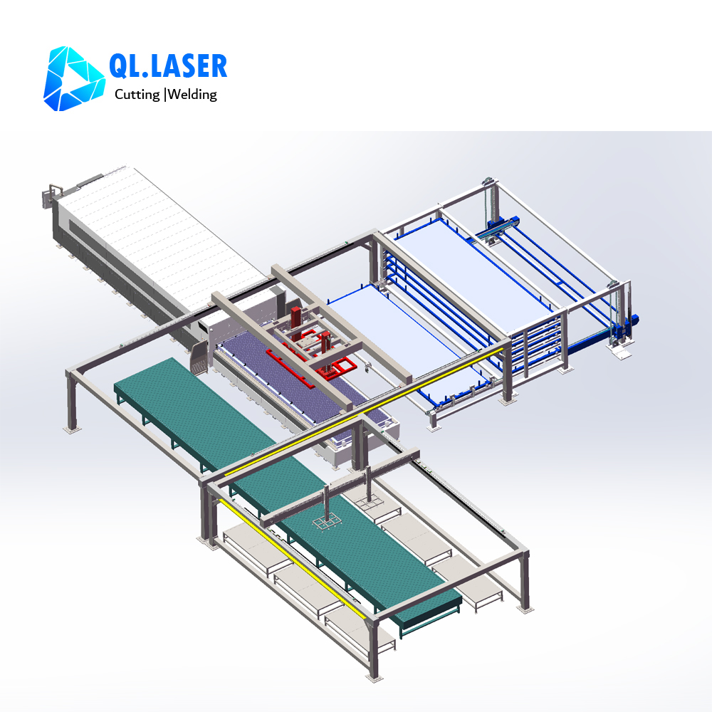 Metal laser cutting machine with automatic loading and unloading system is suitable for large-scale sheet metal processing plants, such as the mass production of chassis shells and elevator door panels.